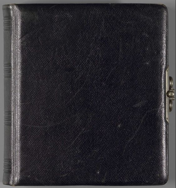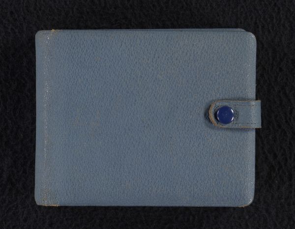 This is a "Fotoalbum met acht foto's uit het privéleven van Karl With" by Karl With. We don't have a specific date for this artwork but the artist lived between 1891 and 1980. The album cover is dominated by a rectangle of worn, blue leather, its texture subtly catching the light to create a play of shadows and highlights. A circular metal button is attached on the right, adding a contrasting gleam and a sense of closure. The form of this small photo album functions as a signifier of memory. The album represents a contained space for private moments that are curated and preserved. The album’s materiality and the aging of its leather surface, evoke a sense of time passing and the fragility of personal history. The limited dimensions of the album suggest the selective and intimate nature of memory, highlighting what is chosen to be remembered versus what is forgotten.