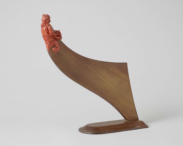 This is a model of a round-headed rudder, made of wood by Rijkswerf Vlissingen. What we see here is more than just a miniature of a ship's component; it’s a testament to both traditional craftsmanship and industrial precision. The choice of wood speaks to the enduring legacy of shipbuilding, where the material's strength and workability were paramount. Notice the ways in which the wood is shaped and joined. These techniques reflect a deep understanding of its properties, combining hand-tooling with the kind of accuracy demanded by maritime engineering. Consider the social context of its creation. The Rijkswerf Vlissingen was a Dutch shipyard. This model hints at the labor, skill, and collective effort involved in the large-scale production of ships. It challenges the distinction between art and craft, highlighting the ingenuity and artistry inherent in functional design. The model encapsulates the essence of maritime culture, bridging the gap between industry and artistry.