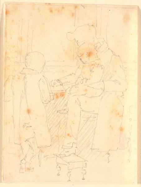 Niels Larsen Stevns made this sketch, Figurskitser, sometime in his life with graphite on paper. You can see it's a torn scrap, not precious. More like a note. I love how the figures feel provisional, almost like thoughts forming. Look at the upper register, the heads and feet, just hanging there. So light, barely touching the paper. And the figures on the bottom, their outlines are tentative. It's all process, no product. The graphite is so delicate, almost like he’s breathing the figures onto the page rather than drawing them. The paper itself becomes part of the composition. It's stained and worn, like a found object. You could see these as studies for a larger work, but honestly, they feel complete as they are. Think of Goya's sketches, those intimate glimpses into his mind. There's a similar sense of immediacy and vulnerability here. Art is such an ongoing conversation, isn't it?