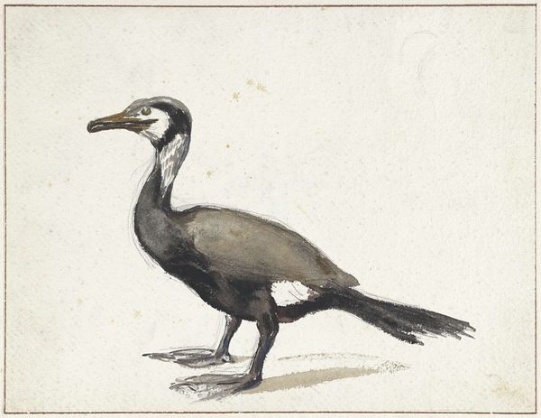 Editor: This drawing, titled "Griffon Vulture," is rendered in ink on paper, it's really striking. I’m intrigued by the artist’s focus on texture, especially the meticulous details in the plumage and the way the beak seems both strong and vulnerable. What strikes you most when you examine the formal elements of this piece? Curator: Formally, I observe a compelling interplay of line and form. The artist uses precise linework to delineate the intricate feather patterns, creating a rich texture that contrasts with the smooth, pale neck of the vulture. Notice how the subtle variations in line thickness generate a sense of depth and volume, even in this two-dimensional medium. Consider the angularity of the claws juxtaposed with the curve of the bird's body. What effect does this create? Editor: It seems like that contrast creates tension, doesn't it? Like a poised energy before it takes flight. I’m also noticing how the background is so minimal, really throwing the vulture into stark relief. Curator: Precisely. The lack of background emphasizes the purity of form. Our attention is directed to the relationships between shapes, the balance of light and shadow, and the overall structure of the composition. Consider how the artist's decision to isolate the subject contributes to its monumental quality, inviting contemplation of its inherent characteristics. Editor: So, by removing extraneous details, the artist is essentially highlighting the essential form and structure of the vulture itself. Very interesting! I never would have thought that by stripping it down, you get so much more to see. Curator: Indeed, by engaging in visual analysis we are rewarded with a richer appreciation. Understanding structure is paramount. Editor: I see what you mean! This formalist approach is making me look at the piece in a whole new way. I now know what I'll be exploring further with my art. Curator: Excellent! Keep those eyes peeled for compositional intricacies and remember how they impact perception!