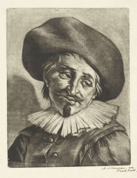 Curator: Looking at "Man with a Miniature Portrait in His Hand," dating roughly from 1615 to 1676 and attributed to Theodor Matham, the immediate impact is that of playful intimacy. It’s currently housed in the Rijksmuseum. What's your take on it? Editor: There's a strong sense of self-awareness emanating from the subject. The miniature portrait in his hand and even the smaller portrait attached to his feathered hat create almost an echo-effect; the man clearly has some story to tell about love or attachment that is visually quite compelling. Curator: Indeed. I think Matham offers a very public expression of personal feeling through these reproduced portraits. This was a period where access to likenesses of people became democratized through prints. Portraits start circulating. So how do these new technologies shift expressions of affection in Matham's era? Editor: Miniatures were significant status symbols and deeply personal tokens of affection. To publicly display these small likenesses meant something beyond the mere representation of wealth, something touching upon personal psychology and self-identity tied up within loved ones. I’m particularly intrigued by the portrait miniature attached to his hat feather—a seemingly frivolous addition that transforms the item from practical wear to ostentatious announcement. Curator: This form of display had political implications, of course, demonstrating who one favored in public society. The distribution of portrait prints allowed broader access to those in power, impacting perceptions of leadership. Beyond the personal, prints functioned to engage subjects with figures and ideas that influenced political debate. Editor: It highlights that people use images and their reproduction in complex ways to display devotion, personal taste, and even project power. In my view, it anticipates modern concepts of self-branding, demonstrating how images, especially portraits, act as extensions of one’s persona. This particular piece speaks to a timeless aspect of the human condition. Curator: Yes, the commodification of portraiture helped people align themselves to influential or political communities. I hadn't considered that modern self-branding implication, but that definitely opens another path for considering its continuing significance. Editor: And so we move from images of power to self-empowering images.