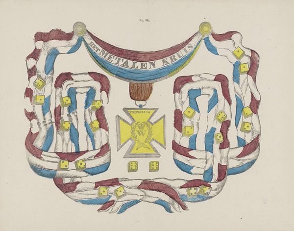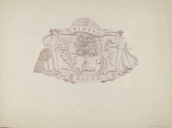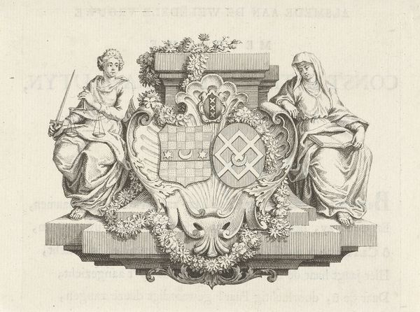 Curator: Welcome. Here we have a print titled "Wapen van de Zeeuwse familie Huyssen van Kattendijke," or "Coat of Arms of the Huyssen van Kattendijke Family from Zeeland," dating from around 1830-1845. It’s attributed to Henricus Wilhelmus Couwenberg and rendered using engraving. Editor: Well, it’s certainly striking! A bit severe, though, isn't it? Those nude figures… hefting clubs. It feels very much of its time – a self-conscious display of power, carefully crafted with very clear visual conventions. Curator: Indeed. The piece reflects the importance of lineage and status during that era. Family crests like this were powerful symbols, demonstrating heritage and social standing. Academic art highly valued tradition. These weren't merely decorations; they served as pronouncements of identity in a hierarchical society. Editor: Precisely. Consider the medium—engraving—such a deliberate, labour-intensive process. Think about the artisan creating the original copperplate. It wasn't just art; it was highly skilled manufacture, linking artistry to production. Also the motto - "Nec Timide Nec Tumide". Curator: Meaning, "Neither timidly nor proudly" reflects an intended moral stance of the family. It also demonstrates the political role that imagery had for family crests and identity. Editor: Right. How it was commissioned, distributed, perhaps displayed on everything from carriages to cutlery, solidifies how interwoven production and consumption of art can reflect and solidify class distinctions. Curator: Certainly. Moreover, the composition adheres to established heraldic conventions, indicating a desire to be seen as legitimate within the social order. Line engraving offered precise, repeatable images—perfect for disseminating the family’s identity. Editor: And the use of specific motifs must surely have signified distinct attributes the family wanted to signal through their crafted representation. The club-wielding figures definitely suggest more than good intentions. Curator: Perhaps it was a display of authority rooted in societal structure! These symbols tell stories. It offers us insights into that time. Editor: I agree, from materials to the people that were buying it. Understanding production informs so much about art and cultural intention. Curator: Precisely, there is always much more to unpack. Thank you. Editor: Always a pleasure!