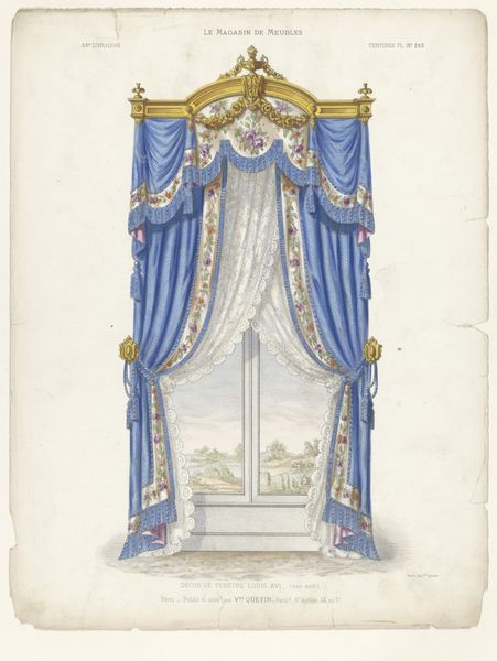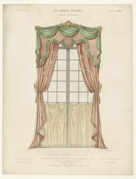 Léon Laroche made this print, “Venster met gordijnen,” using etching, and probably some hand-coloring. This was likely intended for the trade – an image from a pattern book, meant to show prospective clients what they could get if they had the money to spend on a fashionable interior. The soft, draping quality of the curtains suggests that they’re made of velvet or a similar fabric, which would have been quite expensive. Note, too, the elaborate trim – tassel fringe takes time and skill to produce, and would be cost-prohibitive for most people. The window itself is decorated with small painted panes of glass, an additional layer of ornament. All of this is to say that every element in this picture is labor-intensive, and speaks to a culture of elite consumption. Next time you see a print like this, consider the immense amount of work that it represents – not just the artist’s, but the many artisans who would have been involved in making these luxurious furnishings.
