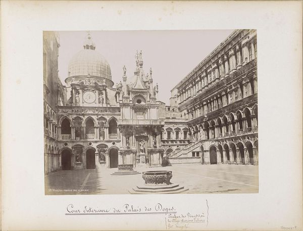 Carlo Ponti created this photograph of the facade of the Basilica di San Marco in Venice using an albumen print, sometime in the mid-19th century. The photograph presents a symmetrical composition, drawing the eye centrally towards the Basilica's main portal, enhanced by the ordered arrangement of its architectural elements. Ponti masterfully uses the play of light and shadow to articulate the textures of the Basilica's facade. The domes create a rhythmic visual cadence, echoing the rounded arches below. Consider how Ponti's choice of perspective, combined with the tonal qualities of the albumen print, evokes a sense of the Basilica as both a physical structure and an emblem of Venetian cultural identity. It invites us to contemplate the interplay between the photographic medium, the architectural subject, and the broader cultural narratives they convey.