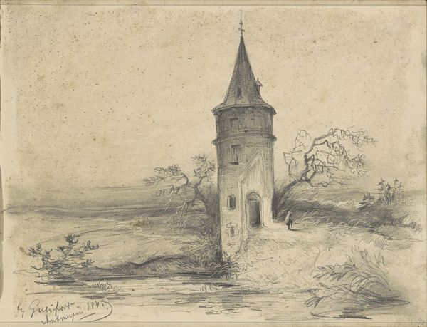 Johannes Tavenraat made this drawing of a house with a spire near Antwerp, in 1845. He used graphite, a humble material, to create a study of light, shadow, and architectural form. What makes this drawing special is the texture and the visual effects achieved with the pencil. Look closely, and you will notice how Tavenraat has used a range of strokes and pressures to bring out the contrast and bring the house to life. The soft, grey tones create a hazy, almost dreamlike quality. The graphite captures the rough texture of the building's materials, and the overall composition has a rustic charm, which reflects an interest in the local, rural architecture, at a time when industrialization was rapidly advancing. Tavenraat’s careful attention to detail is striking. His technique elevates a modest material into a tool for social commentary, and invites us to consider the beauty found in everyday subjects. The use of drawing to document the places in our surroundings, makes us reflect on the beauty of impermanence.