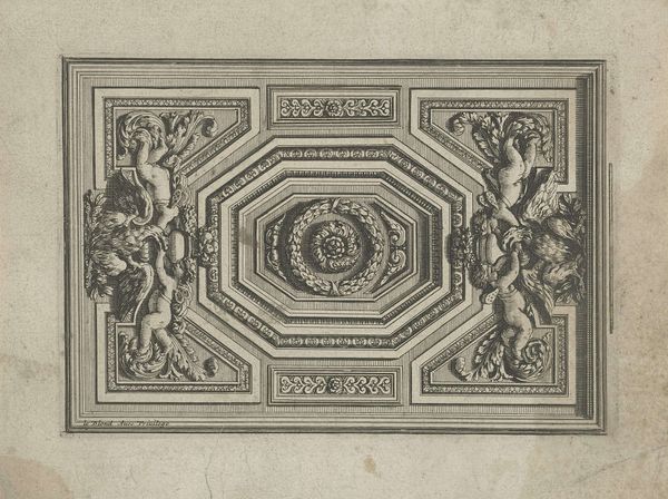 Editor: Here we have a "Design for a Decorated Ceiling," created sometime between 1800 and 1900 by an anonymous artist. It's a drawing, perhaps also a print, currently held at the Metropolitan Museum of Art. The pastel colors and elaborate ornamentation give it a very refined, almost delicate feel. What strikes you about it? Curator: I see an exquisite document reflecting the industrial shifts that influenced art production and consumption during that period. The very concept of a 'design' separates the intellectual labor of conceiving the ornamentation from the physical labor of its execution. Editor: Could you elaborate on that? Curator: Consider the materials - paper, ink, perhaps watercolor. Their availability, standardization, and relative affordability speak to a burgeoning market for decorative arts fueled by industrialization. The ability to reproduce this design as a print broadens its distribution and impact beyond a single, elite commission. Look closely at the repeated motifs. Aren't they almost suggestive of a kind of artistic assembly line, democratizing high art ideals in the making of new homes and spaces? Editor: That’s an interesting perspective; it reframes my thinking about something I initially saw as purely aesthetic. The repetitive designs could be viewed as part of an artistic assembly line to democratize high art? Curator: Precisely. Who owned these homes? How did the availability of these kinds of designs reshape the relationship between artisan, designer, and consumer? This "drawing" offers a window into how class, labor and value intertwined within the art world during the rise of industry. Editor: This really challenges my perception of neoclassical design. Thanks, that perspective has given me a lot to think about. Curator: And for me, seeing it with fresh eyes has illuminated its socio-economic implications with greater depth.