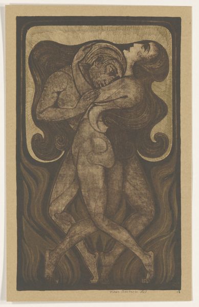 This is a woodcut entitled 'Naked Figures in Various Poses,' made by Reijer Stolk. The artist has carved away at a block of wood, likely using chisels and gouges, to leave a design that can be inked and printed. Notice the contrast between the stark white figures and the textured, dark background. This is achieved by carefully removing wood to create raised areas that catch the ink. The figures are rendered in bold, simplified forms, their poses dynamic and expressive. The wood grain adds another layer of texture, visible in the vertical lines behind the figures. The woodcut is a relatively democratic medium, allowing for the production of multiple prints from a single block. This makes art more accessible, moving it beyond the realm of unique, high-value objects. The artist's hand is still evident in the carving, but the process also embraces the potential for wider distribution. Considering the material and the making of this work allows us to appreciate not only its aesthetic qualities, but also its social and cultural context. It challenges the traditional hierarchy between fine art and craft, highlighting the value of skilled labor and accessible art.