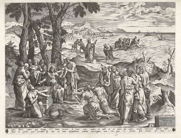 This engraving by Julius Goltzius, made around 1586, depicts the biblical triumph over the Egyptian army. Here, we observe the symbolic drowning of Pharaoh's forces in the Red Sea, juxtaposed with the jubilant celebration of Miriam and the Israelite women on the shore, complete with musical instruments. The motif of celebratory music appears across cultures, from ancient Greek processions to Renaissance festivals, each time marking moments of collective catharsis and triumph. Consider the lyre, played here, echoing the instrument of Apollo, a symbol of harmony and order. Yet, here, it commemorates destruction. This duality reveals how symbols are not fixed but fluid, adapting to the emotional and psychological needs of different eras. The image serves as a reminder of how collective memory shapes our understanding and expression of triumph, continually resurfacing and evolving through time.