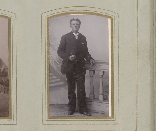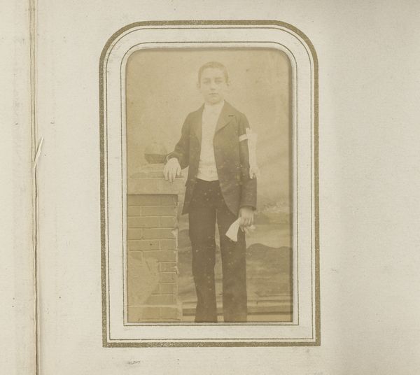 This is a portrait photograph of a boy holding a top hat, made by Adrien Louvois. The hat, a potent symbol of social status, is held in the boy's hand rather than worn, suggesting a moment of transition, a performance of maturity not fully assumed. Consider other instances of the hat's symbolism – from the hats worn by figures in Renaissance paintings, denoting power and intellect, to its later association with the bourgeoisie. This act of holding, rather than wearing, speaks to the complex ways in which we negotiate identity. The setting, a balustrade, suggests classical overtones, reminiscent of aristocratic portraits. It's a stage upon which the boy presents himself, and in doing so, he engages with a lineage of representation, a psychological drama of self and societal expectation, a powerful and engaging image.
