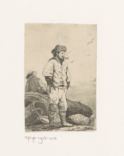 This lithograph by Honoré Daumier, dating from the 19th century, presents a satirical take on hunting. Daumier was a master of lithography, a printmaking technique that uses a flat stone or metal plate to create images. The greasy crayon used in the lithographic process allows for subtle tonal variations, creating a sense of depth and texture. Here, he uses the medium to its full potential, capturing the details of the hunter's clothing and the surrounding landscape. The softness of the lithographic crayon lends itself perfectly to Daumier’s characterful style. This print, like others by Daumier, speaks to the social context of 19th-century France, where class distinctions were often a target for satire. The hunter's attire and exaggerated features suggest a certain level of affluence and self-importance, while the artist's inscription hints at the absurdity of his claims. Ultimately, Daumier's "La Chasse" invites us to reflect on the relationship between social status, leisure activities, and the artist's role as a social commentator.