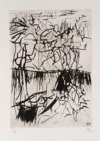 This abstract composition, by Hryhorii Havrylenko, looks like it was probably made with ink on paper, and it's all about the process, right? Look at those marks! The texture is created entirely through the density and direction of these lines. There's no color to distract you, it’s just the stark contrast of black ink against the white paper. In the center, the concentration of lines forms a dark, almost impenetrable mass, while the surrounding areas are lighter and more open. It's interesting to me how Havrylenko uses these repetitive strokes to build up form and space. It reminds me a little of Cy Twombly's scribbles, but with a more architectural feel. You could interpret this as a landscape, a cityscape, or something entirely abstract. Ultimately, it's about the act of mark-making itself, embracing ambiguity and the endless possibilities of interpretation.