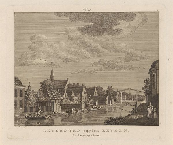 Editor: Here we have Abraham Rademaker's etching, "Gezicht op de kerk te Leimuiden", dating to sometime between 1725 and 1803. The texture created by the etching process is quite striking, giving the landscape and church a distinct, almost antiquated feel. What catches your eye in this print? Curator: I'm interested in the material processes at play. Rademaker, working significantly later than the 1641 date etched onto the image itself, isn’t necessarily giving us a straightforward view. Etching, unlike drawing, is a reproducible medium, designed for wider circulation and consumption. So, whose view are we actually seeing? The publisher, Rademaker, or someone else? What's the market context for these kinds of prints? Were they made for the local citizens, or were they made for tourists, say, consuming picturesque views of the Netherlands? Editor: That's a perspective I hadn’t considered. So, it's not just about the image itself, but the intention behind its creation and dissemination? Curator: Precisely. Consider the labor involved—the production of the plate, the printing process itself. This wasn't just Rademaker sketching in a field; it was a deliberate, commercial endeavor reliant on specific materials, tools and collaborative work. Where would Rademaker have learned this etching skill? Editor: So, looking at it that way shifts the focus from simply appreciating the aesthetic, to examining the socio-economic structures that enabled its production. Curator: Exactly. It invites questions about class, patronage, and the developing art market of the time. Perhaps this image romanticizes a rural past even while it functions as a manufactured commodity of the present. Editor: That gives me a lot to think about regarding the context of artistic creation. Curator: It invites a new way of seeing, one grounded in materiality.