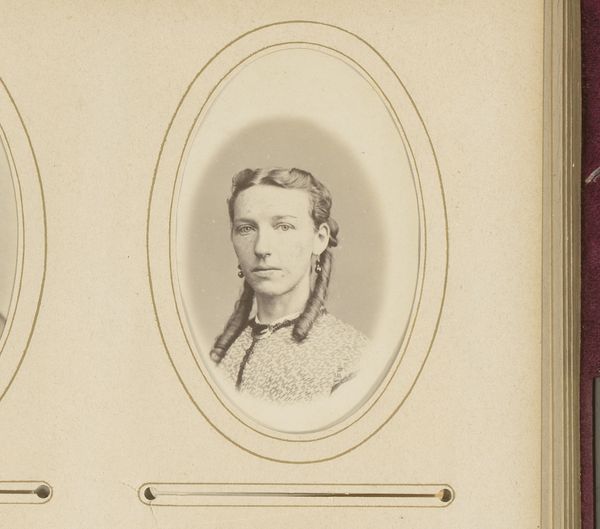 This is a photograph, "Portret van een jonge vrouw," by Johannes Wilhelmus Franciscus Offenberg. The processes and materials involved speak volumes. Firstly, it's a photographic print, likely albumen, a process popular in the 19th century. The light-sensitive chemicals, painstakingly applied, capture a likeness, but also freeze a moment in time, one that then fades with light and age. Consider the labor involved: not just Offenberg's skill, but the industrial manufacturing of photographic materials, and the social desire for images fueled by a growing middle class. The sitter herself may have worked to earn the wage to pay for the portrait. The sepia tones evoke nostalgia, but also remind us of the chemical alchemy at play and the way in which photography made images accessible beyond painting. So, next time you see an old photograph, remember the confluence of science, labor, and desire that brought it into being, challenging our very definition of art.