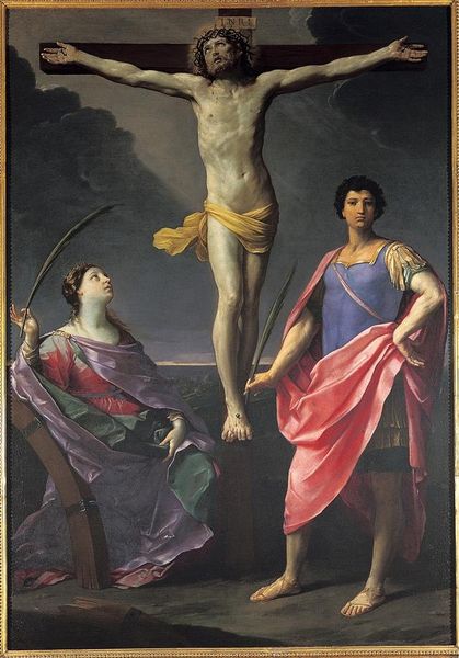 Editor: This is Caravaggio’s “The Crucifixion of Saint Andrew,” painted in oil on canvas between 1606 and 1607. It's such a stark and dramatic scene. The figures are rendered with such brutal realism. How do you see the composition working here? Curator: Formally, observe how Caravaggio uses tenebrism, this extreme contrast between light and dark, not just for dramatic effect but to direct our eye. Notice how the strong diagonal of the cross cuts through the canvas, creating a dynamic, almost unstable composition. The light seems to focus primarily on the body of Saint Andrew. How does this focus affect your reading of the piece? Editor: I guess it draws you into his suffering, the physical agony but, I wonder, what is the importance of that darkness all around the figures? Curator: The darkness serves to isolate the figures, intensifying the emotional impact. Think of it as a visual void that amplifies the raw physicality and the psychological drama unfolding. Moreover, observe the surface texture, the impasto, particularly in the highlighted areas. Editor: Right, it’s really thick in some places. Does the rough surface serve a purpose, other than just depicting texture? Curator: Indeed. The texture contributes to the overall sense of immediacy and rawness. Consider it not merely as representation, but as a physical manifestation of the artist's hand, further emphasizing the visceral nature of the subject matter. It moves beyond just being about visual accuracy and into more raw engagement with the materials of oil and canvas, like an additional layer of expression beyond the story. Editor: I hadn't thought about that tangible presence of the artist. Curator: Analyzing art through its formal qualities offers a pathway to decipher not just what we see, but how it communicates on a deeper, sensory level. Editor: Definitely, focusing on brushwork and lighting opens a different dimension to this work, beyond its historical context. Thanks.