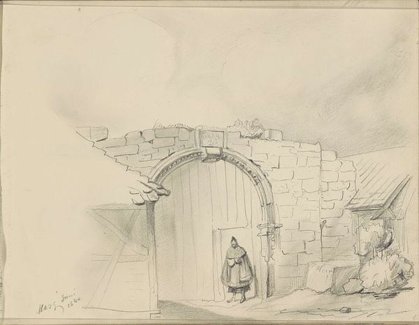 Curator: This delicate graphite drawing is Samuel Prout's "Bridge at Crowland," housed here at the Harvard Art Museums. Editor: It's quite somber, isn't it? The architectural details are rendered with such precision, yet the overall effect is one of melancholy. Curator: Prout was known for his architectural drawings, and I find it fascinating to consider how he captured the textures of stone and water with such a simple medium. One wonders about the labor involved, the hours spent observing this particular site. Editor: And who had access to this kind of leisure? Landscape art like this often served to reinforce existing social hierarchies by presenting an idealized vision of the British countryside, one that obscured the realities of poverty and labor. Curator: That's a valid point, and I see it adds another layer to the drawing. It is a study in contrasts, not just in light and shadow, but in the very social fabric it subtly represents. Editor: Absolutely, and examining artwork in its socio-historical context reveals so much about our evolving relationship with the material world. Curator: Indeed, viewing it in that perspective highlights the complex relationship between art, labor, and social power.