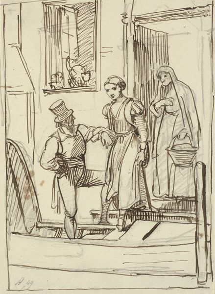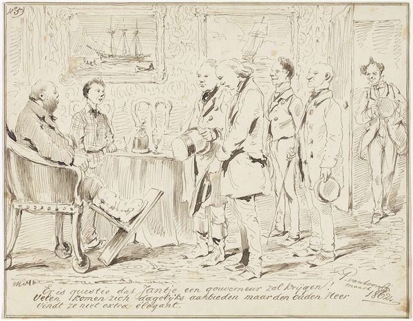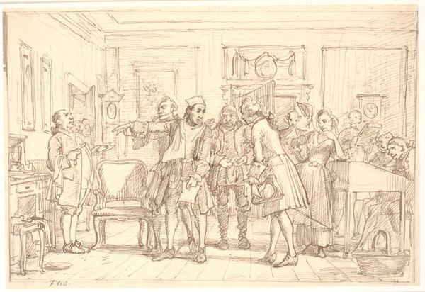 Wilhelm Marstrand sketched "The Councilors' Congratulatory Visit" with delicate strokes, capturing a scene brimming with symbolic tension. Central is the scroll, a symbol of authority, presented with an almost satirical politeness to the stout figure, whose hand clutches his chest in a gesture of surprise or perhaps defensiveness. Consider how such gestures echo across time. Think of classical orators, their hands raised in pronouncements, or even religious figures displaying sacred texts. Here, the gesture is complicated—a mix of genuine offering and veiled mockery. Notice also the subtle voyeurism of the figure in the doorway, a recurring motif found in Dutch Golden Age paintings, reflecting themes of hidden truths and social commentary. These symbols engage us on a subconscious level, drawing from a well of shared cultural memory. They hint at the complex interplay of power, acceptance, and hidden agendas that haunt us through time, reappearing in new guises across the ages.