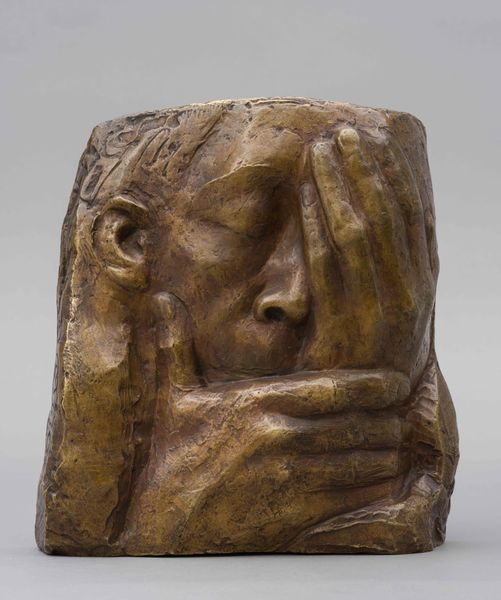 Curator: Jacques Lipchitz's "Seated Bather" presents an intriguing puzzle. It resides in the Tate collection and stands just under 75 centimeters tall. Editor: My first impression is somber, almost melancholic. The rough texture of the material and the downward gaze evoke a sense of introspection. Curator: The motif of the bather carries centuries of symbolic weight, often representing cleansing, rebirth, or vulnerability. What aspects stand out to you in relation to those themes? Editor: For me, it's the brutal honesty of the sculpting process—the marks left by the artist's hand. It highlights the labor involved, a contrast to the idealized form we often see in classical depictions of bathers. Curator: I agree. And perhaps it's precisely this raw quality that gives the figure such emotional depth. It breaks from established conventions. Editor: It’s a far cry from polished marble, isn’t it? I appreciate how Lipchitz directs our attention to the physical act of creation. The hand of the maker is ever present. Curator: A powerful convergence of art history and tangible experience.