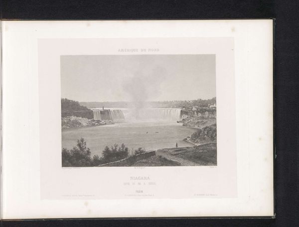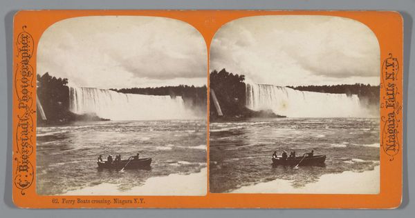 Curator: Welcome. We’re looking at a photograph titled “Niagara Watervallen, Verenigde Staten/Canada” taken around 1910, possibly by Landreth, a prominent figure in pictorialism. Editor: Wow. That tumbling water looks like dissolving snow! What I first noticed is that small steamboat at the bottom…makes the whole scene dreamlike. Curator: That’s an interesting take. Considering pictorialism's aim to elevate photography to the level of art through soft focus and manipulated printing processes, we might discuss how that 'dreamlike' quality serves specific social and cultural functions here. What does that aesthetic do to, and for, the image? Editor: Well, the steamboat reminds me of childhood adventures…a nostalgic charm against that raw, roaring power of the falls! The photographer softened all edges for a storybook effect…even if they don't really rhyme. Curator: True. Focusing our critical eye, though, it’s important to acknowledge how such images promoted an idealized—and often colonialist—vision of the landscape. Nature as spectacle. How might Indigenous perspectives of the Falls differ from this commercially-driven representation? Editor: Hmm...didn't think of it that way. My whimsy just got schooled! Curator: These tensions are part of the picture too, you see. We can be moved and question at the same time. Look closer and consider the composition. The framing. These artistic choices have roots in power and perspective. Editor: It really brings the power into perspective, especially after noticing that miniature boat! It’s beautiful and scary, especially for a flat photograph! I keep wondering what it was like to stand at the foot of these Falls and if the light was indeed, the color of fading ice. Thanks for sharing this work with me today. Curator: A useful, grounding paradox, isn't it? I appreciate you thinking along with me on the picture and its meaning.