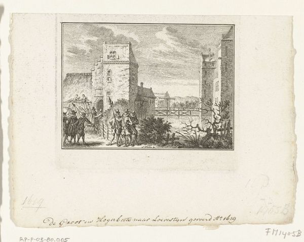 Editor: This print, titled "Koning Eduard IV vertrekt naar Engeland, 1471," by Simon Fokke, was made between 1782 and 1784 using engraving. I'm struck by how it presents history – almost like a staged scene, yet with many people, ships, and an impressive landscape. What do you see in this piece in terms of its historical and cultural importance? Curator: What interests me is not necessarily its accuracy, but its *presentation* of history. Fokke created this image during a time of rising nationalism, using the Baroque style to depict the past as glorious and dramatic. How do you think an image like this might have functioned politically? Was it simply illustrating a historical event, or doing something more? Editor: It feels a bit propagandistic. The departure seems staged to highlight Edward's power, especially if the nationalism of the time played a role. So, the print's less about the specific event and more about fostering a certain image of English leadership. Curator: Precisely. Think about where this image would be circulated: possibly printed in books for the rising literate middle class or hung in public spaces. Fokke uses this event from the Wars of the Roses to construct a heroic narrative and probably appeal to sentiment regarding a stable English identity, especially when you consider it was made close to the American Revolution. It links the past with the present by evoking emotion. Notice how Edward is positioned centrally with visual order and how his departure signifies a renewal of power, or legitimacy of a new, presumably stable English future? Editor: I hadn't considered its circulation and the rising literate middle class, and that shifts my perspective completely. The image becomes less about historical documentation and more about cultural engineering, and communicating national aspirations. I see the artist’s visual language and the intended audiences role in cementing its relevance in time. Curator: And by considering it, you also get to examine how these themes extend to shaping later art.