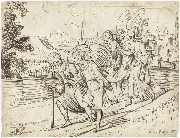 Curator: This print, entitled "Archers," is by Antoinette Bouzonnet-Stella. Editor: It has an incredible sense of depth, almost like a bas-relief sculpture. The composition uses strong diagonals. Curator: Considering Stella’s engagement with printmaking, how do you see the etching process informing the piece's overall aesthetic? Editor: The meticulous lines create dramatic contrasts. The materiality, the plate itself, dictates a kind of rigorousness. Curator: Absolutely, and think about the social context: prints like this circulated widely. Reproducing classical imagery meant wider access to "high art." Editor: That democratization is an interesting tension. Yet, the fine detail still demands a certain connoisseurship, doesn't it? Curator: Precisely, and the materiality belies a sophisticated understanding of consumption. Editor: This piece really makes you think about how form and function work together.