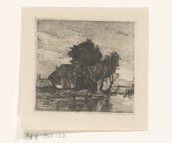 Editor: Here we have Philip Zilcken’s "Mon écluse," an etching from between 1867 and 1890, currently housed in the Rijksmuseum. It evokes a sense of calm; it's hazy, almost dreamlike. What do you see in this piece, especially considering its title, "My Lock"? Curator: The lock, in this context, carries tremendous symbolic weight. Consider the canal itself: a man-made channel. The lock isn’t just a mechanism for navigation; it's a symbol of control, a regulated opening. In contrast, note the wispy vegetation depicted in the etching's borders. Are those botanicals growing freely near the waterways or trapped between frames? Editor: That's interesting. It hadn't struck me that the border held as much significance as the main landscape. What do the hazy details contribute? Curator: Ah, the hazy, blurred, details typical of the style! Here is cultural memory at play, echoing of fleeting experiences. Etchings allowed for widespread reproduction; Zilcken sought not just to represent, but to preserve a collective experience through symbolism accessible through the marketplace. The choice to blur distinctions can signify an act of communal remembering rather than mere individual observation. This blurring makes it more relatable; what memories does it unlock within you? Editor: I find that it reminds me of places I've been; the haze certainly flattens specifics into an emotional recall, instead. It creates more personal ownership of the image, even though it's clearly not *my* specific landscape. Curator: Precisely. We recognize this scene from the cultural unconscious. We are unlocking something shared, something old that can feel deeply, and surprisingly, familiar. Editor: Well, I'll certainly think about cultural memory next time I'm looking at impressionist landscapes. Thank you! Curator: Indeed! The visual cues we take for granted—especially style—often carry the heaviest emotional cargo. It was a pleasure examining this image with you.