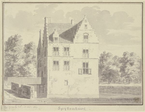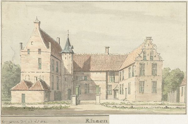 Cornelis Pronk rendered Kasteel Drakenburg in watercolor and pen, creating a scene where architectural precision meets ethereal lightness. The composition meticulously balances the castle's structured facade with the surrounding natural elements. Pronk uses subtle washes of color, predominantly in muted earth tones, to define the form of the building, while the stark lines of the pen emphasize its geometric structure. This interplay creates a tension between the solid and the ephemeral. Note the way Pronk uses a structured approach reminiscent of the architectural renderings of his time, yet softens it with a delicate touch, creating a sense of both document and dream. The castle, though presented with clarity, seems to float slightly within its setting. This invites us to consider not just the physical presence of the building, but also its symbolic weight within the landscape and the imagination. It's a study in contrasts: precision versus fluidity, presence versus absence.