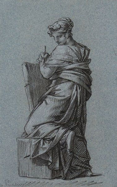Pierre-Paul Prud'hon made this drawing with black and white chalk on blue paper. It shows a woman standing in a small boat. Prud'hon was working in France during a time of great social upheaval. The French Revolution challenged traditional hierarchies. The image creates meaning through classical references, echoing ancient Greek or Roman sculptures. At the same time, this woman is not a goddess or an aristocrat, but a commoner working on the water. Was Prud'hon commenting on the changing social order of his time? Was he critiquing the institutions of art, by depicting an ordinary woman using the visual vocabulary of high art? To understand Prud'hon's intentions better, we could look at his other works, along with the writings of contemporary art critics. The meaning of art is always contingent on its social and institutional context.
