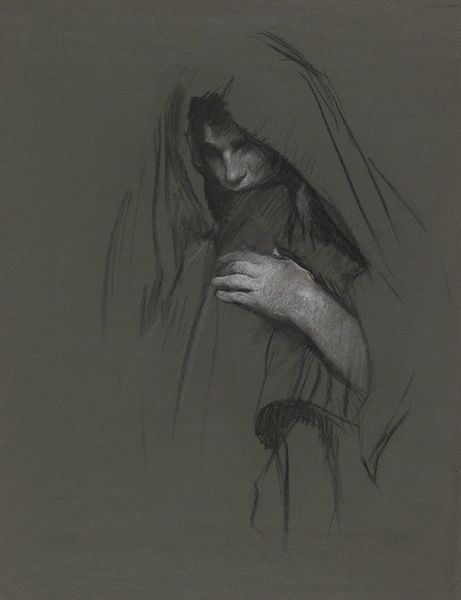 Edwin Austin Abbey created this study for the head of a Celtic woman, in preparation for his painting of a scene from Hamlet. Abbey worked during a period in the late 19th century when there was increasing interest in historical and national identities. Here, the figure of the Celtic woman is depicted with a mysterious gaze, almost otherworldly. The play that the woman is watching in Hamlet mirrors her own life, in which she is betrayed, and descends into madness. The reference to Celtic identity has a historical dimension because Ophelia’s madness and the Celtic identity are used to highlight a sense of the tragic and the misunderstood. Abbey’s work draws upon both a literary tradition and societal fascination with cultural identity. The woman's almost trance-like expression invites us to consider the boundaries between sanity and madness, performance and reality, as they relate to cultural identity.