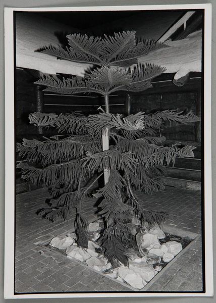 Editor: Here we have Robert Frank's "Snow-covered tree--Landscape," a gelatin silver print created sometime between 1941 and 1945. It's undeniably bleak, but in a strangely beautiful way. What draws you into this scene? Curator: The stark contrast, the ghostly branches...it's as if Frank captured a moment suspended in time, or perhaps a memory fading at the edges. Don't you feel like you’re peering into a half-remembered dream? What strikes me most is that subtle tension between the realism of the subject – a simple snow-covered tree – and that almost post-impressionistic wash of light and shadow. Almost haunting, isn’t it? Editor: Haunting is the right word. Is that the winter light contributing to that mood, or something else? Curator: The light, certainly. But it’s also how Frank frames the ordinary. A lesser artist might’ve missed this visual poem, this dialogue between the solid tree trunk and the almost ethereal branches. Do you notice how he places the horizon line? Almost bisecting the frame…it unbalances everything, adding to that sense of unease. Editor: It does feel unbalanced, now that you mention it. It feels very modern, and a bit rough. Almost as if it was taken as a snap shot, right? Curator: Precisely! It's the kind of image that whispers rather than shouts, urging us to confront the delicate, sometimes unsettling, beauty of the everyday. It's easy to miss, wouldn't you agree? Editor: Definitely. I never would have picked up on so much detail if you hadn't pointed it out. Curator: That's the beauty of art, isn't it? There's always more to see, more to feel. I almost wish I was out there, experiencing it!