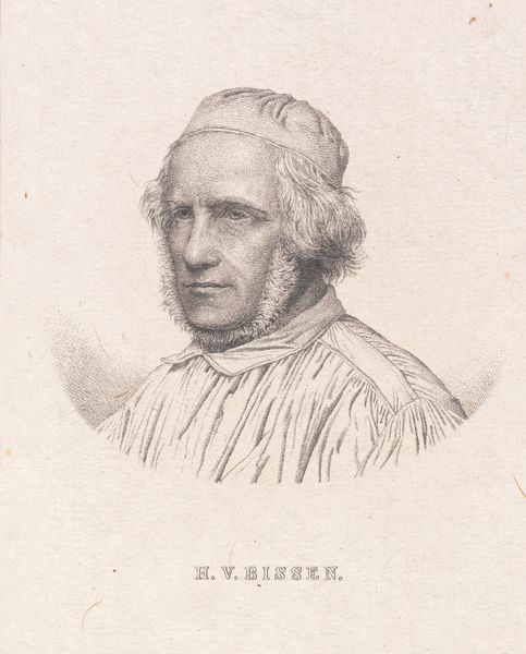 Henricus Wilhelmus Couwenberg made this monochrome print, titled "Man's Bust in Oval", sometime during his short life in the first half of the 19th century. During this period, portraits were a common way for the Dutch middle class to assert their identity and status in a rapidly changing society. Yet, within these conventions, we see a divergence. The man's gaze is averted, his mouth is not set in a polite smile, and his hair is unkempt. This begs the question, what are the emotional implications of deviating from the norm? Consider Couwenberg's biography: he died at the age of 31. What emotional and personal elements emerge when you consider that this artist may have been grappling with his own mortality? Does the man's somewhat forlorn affect reflect the artist's own internal struggles? Ultimately, this print reflects how personal stories and societal norms intersect. It encourages us to reflect on the narratives we construct about ourselves and others.