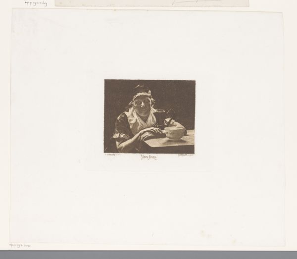 Willem de Zwart, an artist working in the Netherlands at the turn of the 20th century, created this intimate etching of two cats. During this time, there was growing interest in the everyday lives of animals, as artists sought to capture naturalistic scenes. De Zwart reduces the image to its most essential elements, focusing on the shared moment between the two creatures. One cat is actively drinking, fully immersed and its back to us, while the other waits patiently, or perhaps cautiously observes, to the side. There's a distinct contrast in their postures that hints at the complex relationship between domestic animals and their surroundings, a relationship often filled with tension. De Zwart’s ability to draw us into the small world of these cats invites us to reflect on the nuances of companionship and the quiet dramas of daily life.