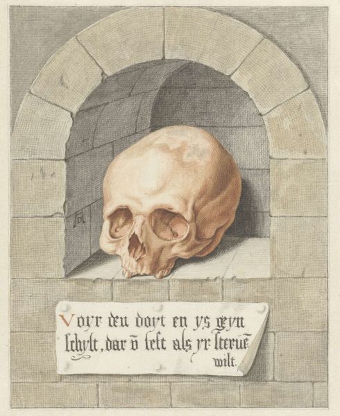 This ‘Skull’ was created by Mabuse using oil paint, a relatively new medium at the time. Oil allowed for a new level of realism, as we can clearly see here. Note how Mabuse used his technical skill with layering and blending to build up this image from dark to light. The painting technique mimics the slow, geological processes that form the materials in our bodies. The skeletal structure and fragile, paper banner are given substance by the artist’s hand. A single, sinuous line in the background reminds us of the constant passage of time and the ephemeral nature of human life. Mabuse had a close relationship with the courts of Europe, and he fully understood that the powerful families around him would eventually face mortality. This painting is a ‘memento mori’ to remind us that, although social and material conditions affect our lives and deaths, our bones will be the great leveler in the end. Let's remember the importance of materials, making, and context to fully understand this piece.
