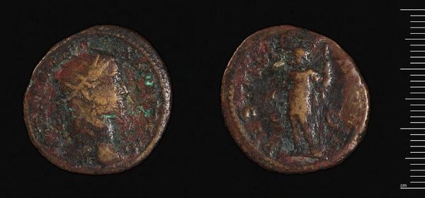 Curator: This is a dupondius, a Roman coin, featuring Maximinus I Thrax. It weighs just over 10 grams and is currently held in the Harvard Art Museums. Editor: The patina is just stunning! It evokes a somber, almost haunting mood, like peering into a lost empire. Curator: The imagery would have been carefully selected. Maximinus, a soldier-emperor, likely chose imagery reflecting military might and imperial authority. The figure on the reverse is probably a representation of Pax, the Roman goddess of peace. Editor: The notion of "peace" under a soldier-emperor strikes me as...fraught, to say the least. It's a powerful example of how symbols can be twisted to serve political agendas, masking brutality with an illusion of order. Curator: Indeed, and the coin itself, as a form of propaganda, speaks volumes about the emperor’s need to project power and legitimacy. The coin's value would have been trusted, in part, by its symbol of stability. Editor: It makes you wonder how many hands this coin passed through, and what kind of social interactions it facilitated, during a turbulent time in Roman history. Curator: A tangible link to a complex past, full of contradictions. Editor: Yes, reminding us that symbols are rarely innocent, and that peace is a construct often built on shaky foundations.