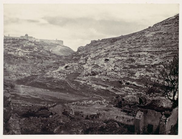 Curator: We’re now looking at "Etang de Liloe," a landscape captured in the 1870s by Félix Bonfils, part of the Minneapolis Institute of Art's collection. It's an albumen print, a very popular photographic process in the 19th century, lending it that warm, sepia tone. Editor: Mmm, sepia. Gives it that wonderfully dreamy, almost vanished world feel. Makes me think of daguerreotypes I’d find tucked away in an old attic trunk, secrets layered within faded shadows. Curator: Bonfils was part of a wave of photographers who documented the landscapes of the Mediterranean and the Middle East for a European audience hungry for exotic imagery. His work became quite influential in shaping Western perceptions. Editor: You can almost feel the heat radiating off this image. The reflections in the water are hazy, like memories. The texture, even with the albumen print’s…flatness…has this strange tactile quality. Makes you want to reach out and touch those scraggly trees. Curator: It is interesting how he balances realism with a touch of romanticism, wouldn’t you agree? There’s a documentary aspect in the topographical detail, but the composition leans toward evoking a mood of contemplative serenity. And look at the perspective; it seems carefully crafted to emphasize both the natural beauty and the subtle infrastructure evident in the environment. Editor: Infrastructure…see, my first thought went right to its painterly qualities—how he uses light to create depth, the tonal shifts creating the atmosphere… it's less about, “Here is a place,” and more about, “How does this place *feel*?” Did the audience back then look at this and imagine going there? Curator: It's highly probable, especially during the rise of tourism during this time period. It helped to construct an imagined “Orient”, both for those who wished to travel there, and as a way to reinforce perceptions and hierarchies among those back home. Editor: So interesting how photography steps into these different roles – documentation and fantasy. Curator: It certainly gives us plenty to contemplate now! It is one of those images where its history and impact remain surprisingly active. Editor: Absolutely. Now I can say I saw a vanishing world, and pondered how those photographs defined it for us.