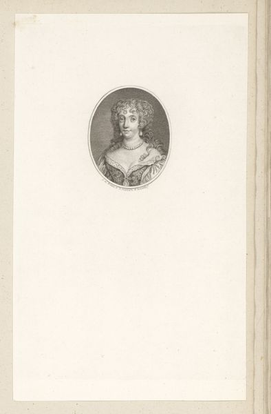J. L. Benoist's "Marie Antoinette of Austria, Queen of France" is a study in contrasts. It is a small print with an understated gray color scheme, but it captures the essence of French royalty. Encapsulated in a perfect circle, Marie Antoinette is the focal point. Benoist uses this shape to highlight Marie Antoinette's features. The Queen's elaborate, feathered headdress draws the eye upwards, while her elegant gown balances the composition. The contrast in textures—from the smoothness of her skin to the intricate lace—adds depth and a sense of her presence. The circular frame, inscribed with text, creates a visual boundary, a space where the Queen is both present and isolated, which gives the engraving a deeper resonance, inviting viewers to contemplate the complexities of identity, representation, and power.