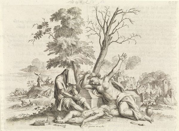 Editor: Here we have "Atalanta and Meleager Hunting the Calydonian Boar," a striking oil painting by Peter Paul Rubens. There's so much movement in this piece, yet also a stillness created by the landscape. How would you begin to unpack a work like this? Curator: The eye is immediately drawn to the diagonal dynamism created by the figures in the foreground, particularly the struggling figures and animals. Note the stark contrast in the application of light - how Rubens uses this contrast to further emphasize the violence and struggle. The dense, dark forest provides a backdrop, but even here, observe how Rubens uses subtle gradations of color and tone to create depth and prevent it from becoming a flat, dimensionless plane. What is your interpretation of the relationship between the foreground action and the background landscape? Editor: I see the dark forest as setting a stage for the human drama unfolding in the hunt. I guess that Rubens use the woods to create the scene and he added the actors. How would you analyze Rubens’ technique, his application of paint and brushstrokes, to give it this vibrant tension? Curator: Consider the texture and the directionality of the brushstrokes. In the figures, notice the impasto, the thick application of paint which creates a tangible surface, almost sculptural in quality. Look at the bodies of the animals, contorted and reacting to violence, but then look to the calm stillness of the wood. Now look back at the foreground, how it uses the light reflected off of bodies in contorted action to draw the eye? Does this reading give a better interpretation than we had before? Editor: Yes, I notice how the artist used all aspects available to achieve this composition and the sense of dramatic impact by making this landscape alive. It’s really amazing. Thank you! Curator: Indeed. Analyzing the interplay between form, light, and texture opens up new avenues for understanding the artwork's intended impact.