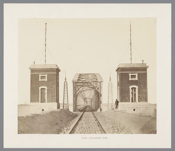 Editor: Here we have Heinrich Fischer’s "Stoomlocomotief van de kabelspoorweg op de Rigi," a photograph, specifically an albumen print, dating from around 1875 to 1890. I’m struck by how this image captures both progress and a sort of quiet stillness. What symbols or visual elements do you find most resonant here? Curator: I immediately notice the juxtaposition of the train with the church. The locomotive, a symbol of modernity and technological advancement, sits in the foreground. But behind it we have the church, a timeless symbol of faith and tradition. Editor: I hadn't thought of that! Is that contrast common for the period? Curator: Precisely! Think about what these objects signified to people at the time. Trains shrunk distances and redefined our sense of time and space. But, what happens when the sacred, previously at the heart of community identity, starts to compete with new, secular powers like industry and science? The photograph acts as an index for these changing perceptions of space. The visual language asks us, perhaps unconsciously, to meditate on what is lost and gained with such progress. How does the billowing steam play into that dichotomy for you? Editor: Well, the smoke is powerful and suggests speed and industry, yet it also veils the church slightly, obscuring it. It really drives home the theme of change and maybe even disruption! I hadn't appreciated how much meaning could be packed into such a seemingly straightforward image. Curator: Exactly. Images such as this preserve cultural memory. These aren’t just documents of locomotives; they reveal deeper anxieties and celebrations surrounding modernity's impact on the traditional landscape. Hopefully you are considering what this might say about present-day changes, too? Editor: This was very insightful! Now I see the photograph as more than a historical record; it’s a poignant meditation on the relationship between progress and tradition, which feels really relevant even now. Thanks for this new perspective.