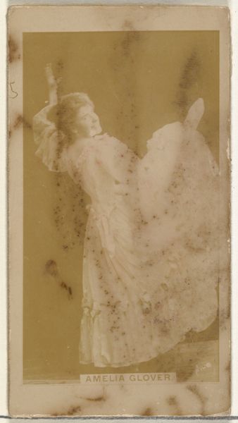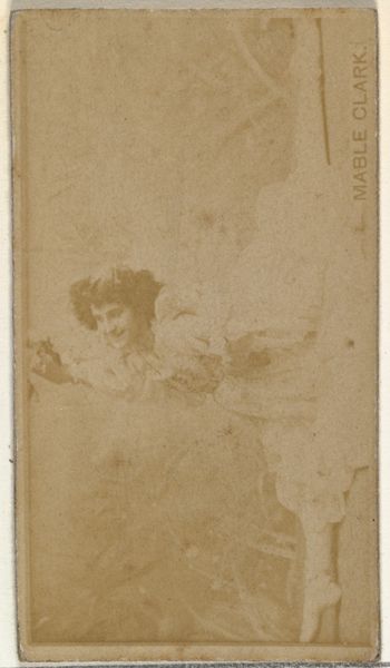 Editor: Here we have "Mabel Clark, from the Actors and Actresses series" made between 1885 and 1891 by Allen & Ginter. It’s a small portrait, a drawing turned into a print that was included in packs of Virginia Brights cigarettes. It's faded and sepia-toned, which gives it such an antique feel. What's your take on this kind of commercial portraiture? Curator: This card exemplifies how celebrity and consumerism were intertwined in the late 19th century. The Virginia Brights cigarette company commodified Mabel Clark's image, transforming her into a collectible item and promoting both her career and their product. Consider the power dynamic here – a corporation leveraging an artist’s likeness. Does that raise any questions about the agency of the actors involved? Editor: Absolutely. It’s a very interesting point to consider that the very image is advertising. I am curious about how people may have perceived celebrity differently then. Curator: Indeed. Think about the broader circulation of imagery. Before mass media, these cards provided a tangible, collectible connection to public figures. It reflects a changing relationship between performers and the public, shaped by the burgeoning consumer culture. It brings the idea of "collecting" fame quite literally to the surface, don’t you think? Editor: That’s fascinating. I hadn't considered it in terms of fame as a commodity. It makes you wonder about the ethics and implications of this kind of promotion. I guess it demonstrates how early celebrity endorsements actually go. Curator: Precisely! And examining such ephemera provides a window into the social and cultural landscape of the period and tells us as much about cultural values of the day as they did about Mabel Clark. Editor: I see your point; it really illuminates how art exists within broader social structures, not just as something aesthetically pleasing, but something political. Curator: Glad you can appreciate the image with me, looking at its value from different social, historical and economical perspectives.
