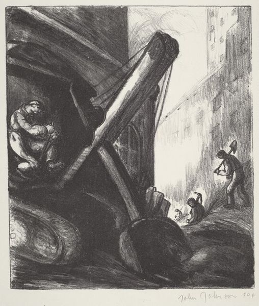 Sid Hammer made this image, Manna, as a print, and it seems to have been made in 1961. The marks are raw, direct, and full of energy; it’s clear that the process was as important as the outcome. Looking at it, what strikes me is the texture. The image is filled with dense, energetic lines. This gives it a tangible, almost tactile quality. You can almost feel the rough surface of the plate and the pressure of the press. Look at the bottom left; that dark shape seems to anchor the work, grounding the figures above. The scratchy, angular strokes give it a real weight and presence. Hammer seems to be channeling artists like Kathe Kollwitz in his concern for depicting the anonymous masses. But this has a modern and personal twist. Ultimately, this piece reminds us that art is never truly finished but is always part of an ongoing conversation, an exchange of ideas across time and space. It's a reminder that ambiguity and multiple interpretations are part of what makes art so compelling.