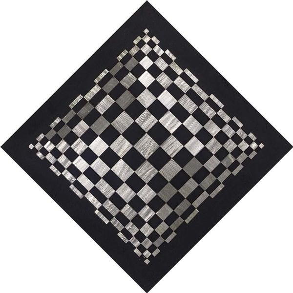 Max Bill’s artwork, "Vier uberlagerte zonen," presents us with an exercise in pure, geometrical form. It is comprised of interlocking squares and triangles, painted in shades of blue and purple. The composition is strikingly simple: a square canvas oriented diagonally, with smaller colored shapes filling the space. Bill's choice of cool tones lends the piece a serene, almost meditative quality. The flat application of paint emphasizes the materiality of the work, highlighting its existence as a constructed object rather than an illusionistic representation. Bill’s use of geometric abstraction aligns him with the principles of Concrete Art, which sought to create autonomous artworks free from external references or symbolism. The overlapping zones invite us to consider how these shapes interact, creating visual tension and harmony. Ultimately, this work challenges us to find beauty and meaning in the purest forms of geometric abstraction.