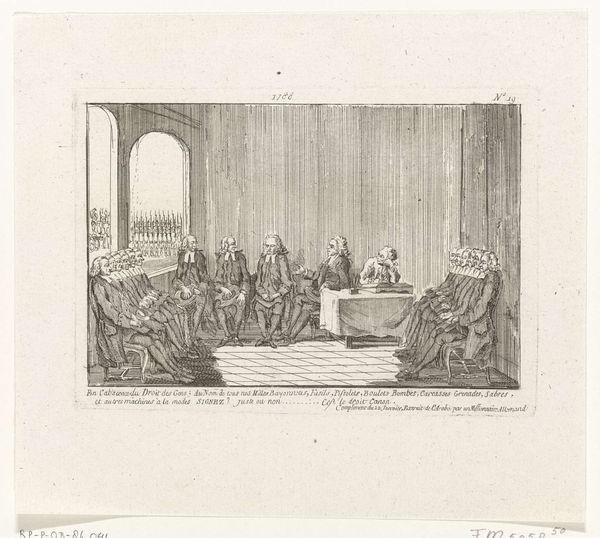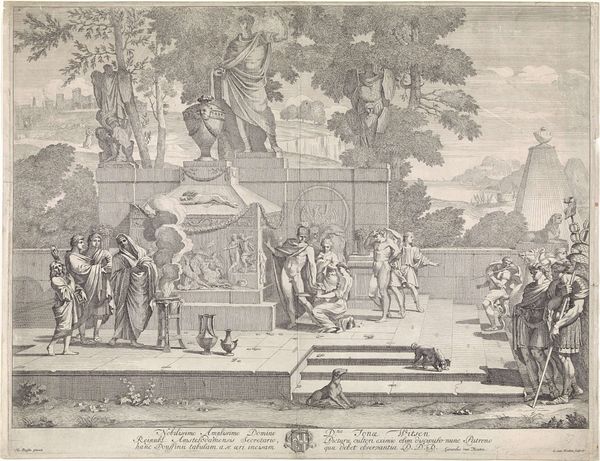 Curator: I find this engraving fascinating, especially when considering its historical context and material creation. Editor: We’re looking at "View of High Hedges and the House on the Clingendael Estate," an engraving possibly made between 1682 and 1746 by Laurens Scherm, currently held at the Rijksmuseum. I am immediately drawn to the repeating archways, each seeming to frame another glimpse of the estate. It feels a bit like looking through a series of stages. What strikes you most? Curator: The engraving process itself is compelling. Think about the labour involved in creating this image: the precise cutting into a metal plate, the application of ink, the pressure required to transfer the image onto paper. This wasn't just about depicting a scene; it was about mass production, making this view accessible to a wider audience. It transforms a private estate into a commodity. Editor: That’s interesting; it almost flattens the exclusive experience of being there through its replicability. But what about the subject? The figures seem so deliberately placed, the landscape meticulously structured. Does the artist’s technique play a specific role in representing this cultivated space? Curator: Absolutely. The very act of engraving, with its linear precision, mirrors the control imposed upon nature in these formal gardens. This aesthetic preference reflected societal power structures, as seen in consumption and class division. Consider how the clean lines of the engraving contrasted with the often-messy realities of land ownership and labour involved in maintaining such an estate. Editor: So, by examining the production and material of this print, we uncover the relationship between art, labor, and consumption in 17th-century Dutch society. Curator: Exactly. It reminds us that even seemingly simple landscape prints can be powerful indicators of complex social realities. Editor: That is fascinating. I had not thought about it that way. Thanks for widening my perspective.