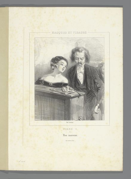 This print by Paul Gavarni captures a pianist in the throes of performance, observed by an audience. The image is named "Piano I, L'orage" [The Storm]. The open music books are prominent, alluding to knowledge but also perhaps to being overwhelmed, lost in one’s craft. Consider the piano, a symbol of harmony and order, now portrayed as a site of disarray with sheet music haphazardly strewn. The pianist's disheveled appearance and the intensity of his expression suggest a man transported, perhaps lost, in the passion of the moment. This frenzied creative state is echoed in other artistic expressions throughout history, from Van Gogh's swirling skies to the ecstatic poses of Bernini's saints. Note how the upturned faces of the audience suggest not only observation, but also a mirror to the pianist’s internal state. The “storm” is not only in the music, but in the emotional connection between performer and listener, a powerful resonance passed down through time, constantly re-experienced.
