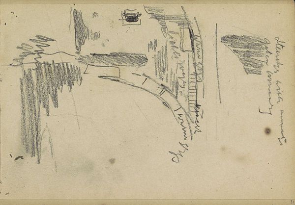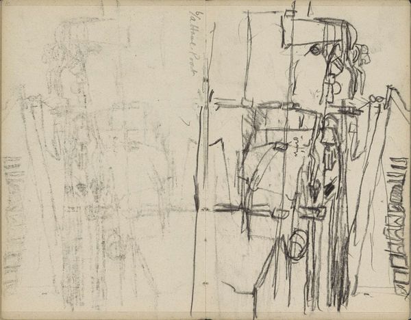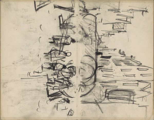 Editor: This sketch by Willem Witsen, titled "Bridge and Buildings on the Water", and created sometime between 1887 and 1920, uses pencil and pen on paper. It feels incredibly immediate, almost like a fleeting thought captured on paper. What stands out to you? Curator: Well, what grabs my attention is the stark presentation of artistic labour itself. The medium is simple - graphite and ink - readily available and affordable, signifying a shift from the elite art production towards something more democratic. It raises questions about Witsen’s intended audience. Was this a preparatory sketch, or did he consider this work on paper a finished product? Editor: That's a perspective I hadn't considered. It does seem so raw and unrefined compared to other works of the period. So, the everyday nature of the materials influences our perception? Curator: Precisely! And look closely at the bridge: consider it as a nexus point, connecting not just spaces but social spheres, too. Who used this bridge? What commerce, what daily lives moved across this structure captured by Witsen's hand? We see not only the physical structure but also the record of human interaction with the urban environment. Editor: I see what you mean. The bridge becomes almost a symbol of societal connections. Curator: Exactly! Furthermore, it pushes against established hierarchies by blurring lines between high art and craft. Traditionally, sketching served purely as groundwork towards final art pieces but here, we contemplate how Witsen subverts that conventional process by presenting his draft on display, open for viewing! Editor: It's fascinating how focusing on the materiality and context can completely transform my understanding of a seemingly simple sketch. Curator: Absolutely. And it highlights the power of the everyday in shaping both art and society.