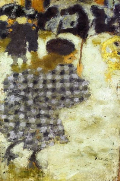 Édouard Vuillard likely made this small painting, titled *La Nourrice*, with oil paint on board. Vuillard was associated with the Nabis group, who were interested in the decorative arts. You can see this sensibility here in the overall patterning of the composition, and the way the figures seem almost subsumed into the domestic interior. But let’s think about the materiality of this work, and its making. Vuillard’s brushstrokes are short and choppy, building up a dense surface texture. He seems to be evoking the close atmosphere of a room, even the fuzziness of textiles. The sitter, the "nourrice," or nanny, seems to be absorbed in her work of childcare. And Vuillard seems interested in the labor involved in maintaining a household. The apparent informality of this painting shouldn’t fool you. It is a highly considered, beautifully crafted object. And it reminds us that making—whether painting or caring for children—is work.