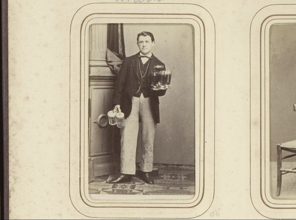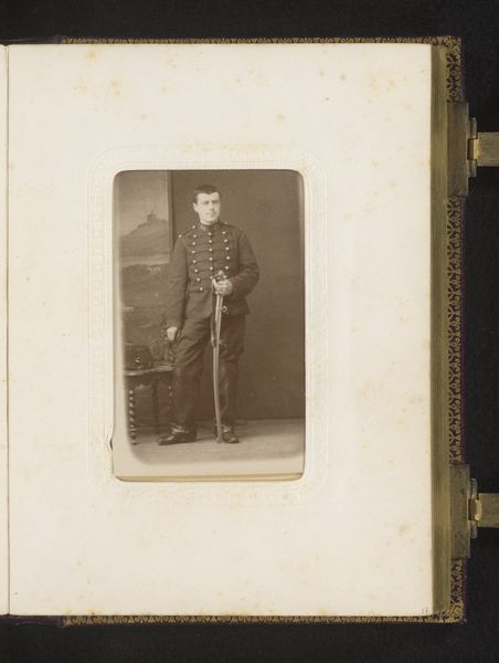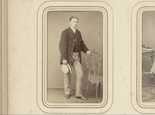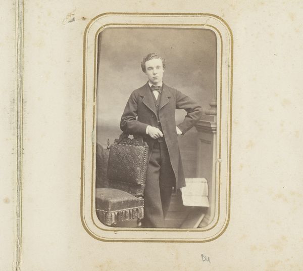 This is a vintage portrait made by Jamin et Cie. The photograph captures a young boy standing beside a table with a book. The composition is striking in its balance and formality. The muted sepia tones lend a timeless quality, emphasizing the texture of the boy’s clothing and the polished surface of the table. The boy’s posture, with his hand resting gently on the book, exudes a sense of quiet confidence and poised innocence. The photograph functions as a cultural artifact, reflecting 19th-century values around childhood, education, and social decorum. The choice of placing the book prominently suggests an emphasis on knowledge and learning as key components of the boy's identity. The formal composition and attention to detail elevate the portrait beyond a simple depiction, inviting viewers to contemplate the sitter's place within a broader social and intellectual context. The photograph destabilizes any fixed notions of childhood. The boy appears self-possessed, embodying a blend of vulnerability and strength that remains open to ongoing interpretation.