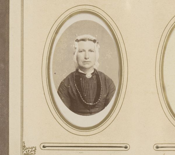 This is a photograph, presumably made sometime in the 19th century by F.D. van Rosmalen & Zoon. As a photographic print, the work begins with optics and chemistry, the skillful manipulation of light and silver salts. What’s most interesting to me is the sitter's clothing, particularly her elaborate bonnet, which resembles the Friese kap. This is no mere fashion accessory, but a potent signifier of regional identity, one created through a blend of handcraft and possibly also industrial production. It speaks to the complex economy of the garment trade, and the way that clothing could indicate both social status and cultural affiliation. Looking at this image, it’s easy to forget the amount of labour that went into producing it – not just the photographer’s skill, but the many hands that would have been involved in the making of the sitter's clothes. By giving attention to these aspects, we can understand the image as more than just a portrait, but as a document of its time.
