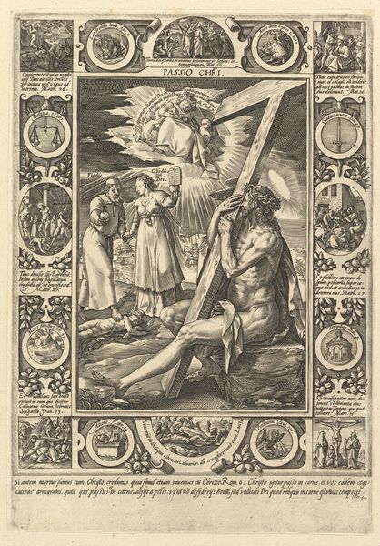 Hendrick Goltzius created this print of "The Miracles of Christ" in the Netherlands sometime around 1598. Goltzius, as a leading Northern Mannerist, was known for his inventive compositions, and this print is no exception. At its center, we see Christ healing the sick, in the border we can see an intricate series of vignettes. The composition is an argument for faith healing, with an appeal to divine intervention. The central scene is framed by smaller scenes depicting biblical stories and allegorical imagery, reinforcing the idea of Christ as a miracle worker. Prints such as these, which were distributed widely, played an important role during the period of the reformation in shaping popular religious beliefs and in visualizing its claims. Art historians, when considering religious imagery, will often look to religious texts and popular beliefs of the time. By studying the historical context, we can gain a richer understanding of the print's meaning and its intended audience.