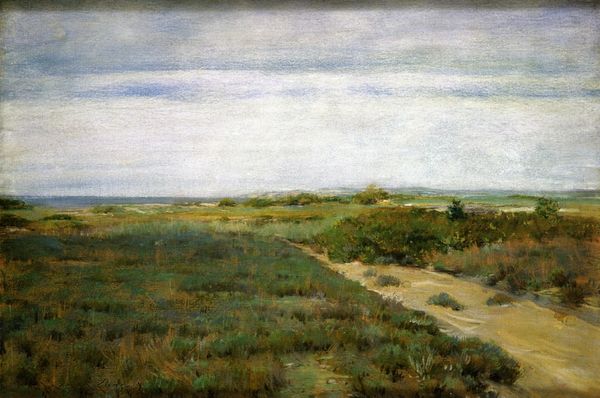 Rose O’Neill rendered this oil on canvas painting, Carmel Dunes, sometime during her career as an illustrator, cartoonist, and artist. O'Neill was a woman working in fields dominated by men in the late 19th and early 20th centuries. In her art, she challenged traditional gender roles and conventional representations of women by creating characters that were independent, adventurous, and expressive. The landscape format offered O'Neill a respite from the confines of the figure. This vista, where land meets sky, evokes a sense of freedom and escape, mirroring O'Neill's own life as an artist who defied social norms and expectations. While O'Neill is best known for her Kewpie illustrations, landscapes like this offered her a space to explore her artistic talents beyond commercial work, and to connect with nature. As you contemplate this painting, consider the ways in which O'Neill's personal experiences and artistic vision are reflected in her work.