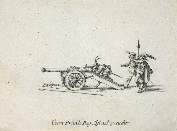 Editor: So, this is Jacques Callot's "Exercise with Crossbow: Preparing to Shoot," from the early 17th century. It's a small etching, only a few inches across. It feels like a study of movement and preparation. What strikes you about it? Curator: This piece, made during a time of intense religious and political conflict, reflects the militarization of early modern society. How does Callot’s meticulous rendering of these figures, poised for action, speak to the era's anxieties about power, control, and the ever-present threat of violence? Editor: That's a really interesting perspective. I was so focused on the technical aspect. Curator: Consider also the privilege inherent in weapons training. Who had access to this knowledge, and what does that say about the social hierarchy of the time? Editor: I hadn't thought about it that way. Thanks for broadening my understanding! Curator: It's crucial to remember that art doesn't exist in a vacuum. Understanding its historical and social context allows us to engage with it more meaningfully.