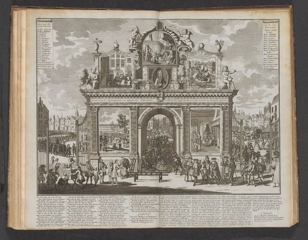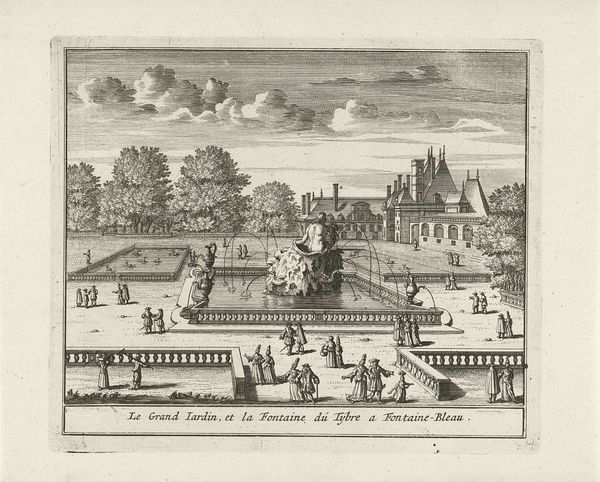 Romeyn de Hooghe created this print of the gate and pond in the park of Enghien, likely around the turn of the 18th century. De Hooghe offers a glimpse into the leisure and landscape design of the period. But it's also an artifact of print culture and the institutions of art. Engravings like this circulated widely in the Dutch Republic, contributing to public discourse and shaping perceptions of status, taste, and place. The formal garden, with its ordered nature and classical allusions, reflects a desire for control and the imposition of human will on the environment. Consider how the figures are arranged, gazing out and drawing us into this constructed vista. The architectural framing of the scene invites us to see it as a stage set for elite social life. Prints such as this were not simply descriptive; they actively participated in constructing ideas about national identity and cultural achievement. Understanding this print, therefore, requires us to investigate the social history of landscape design, printmaking, and the public sphere in the Dutch Republic. Resources like period travelogues, garden design manuals, and inventories of print collections can help reconstruct this world.